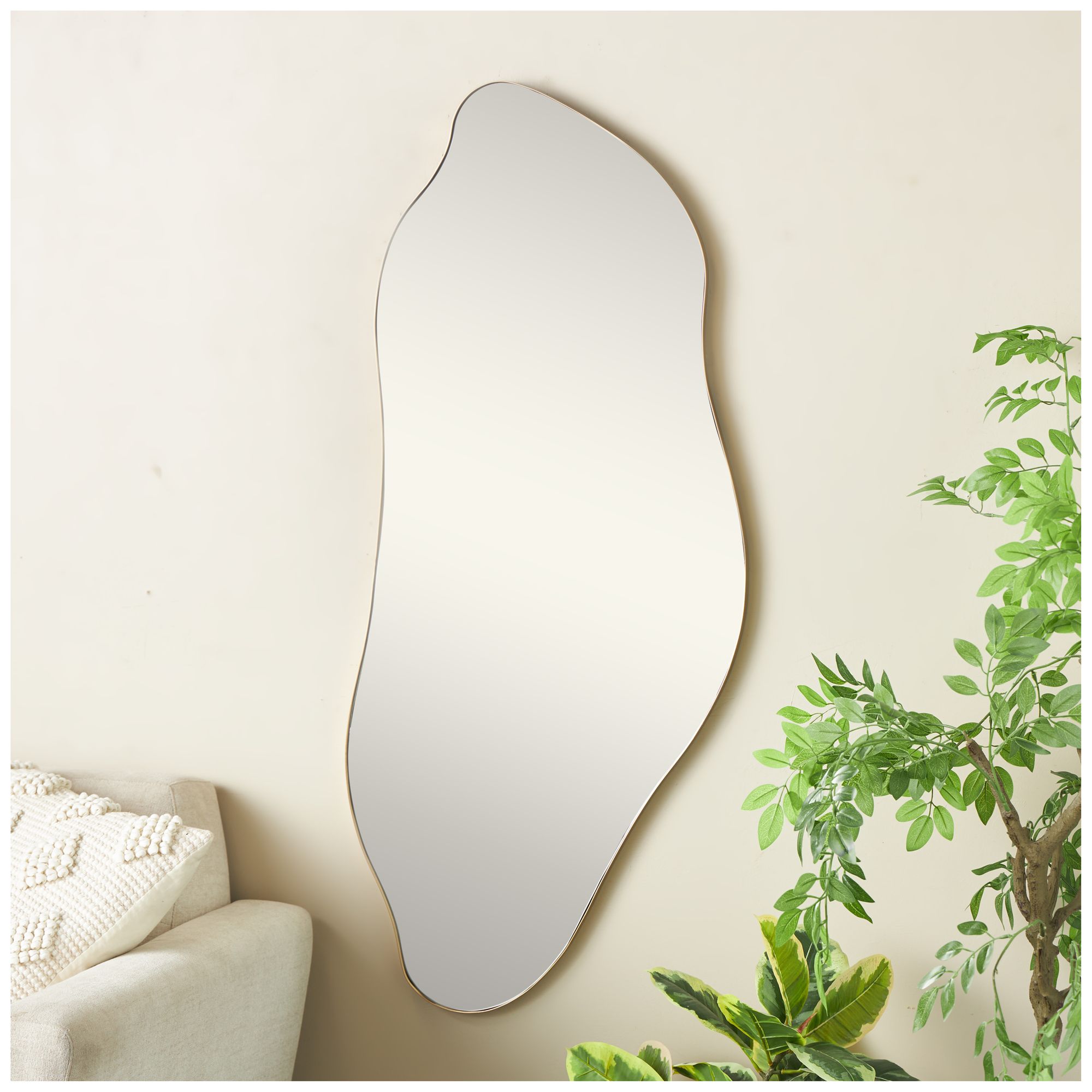 Gold Metal Contemporary Wall Mirror, 20" x 1" x 48"