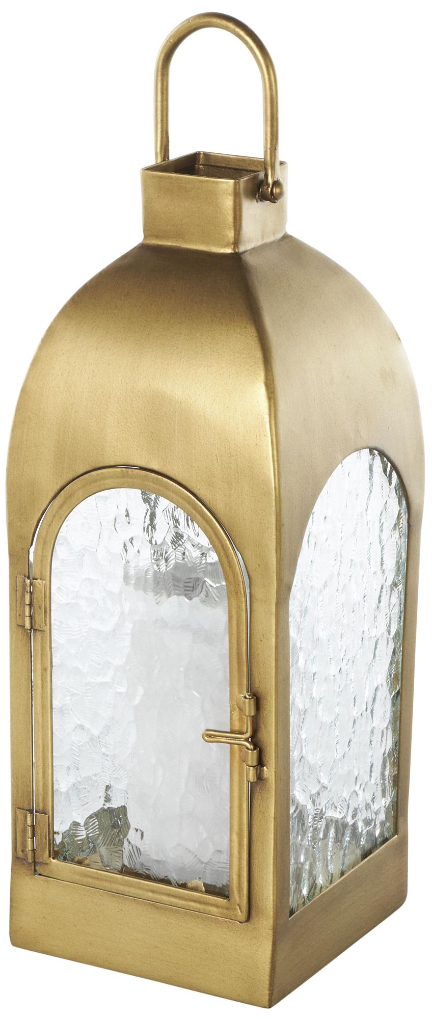 Gold Metal Industrial Candle Lantern, 6" x 6" x 18"