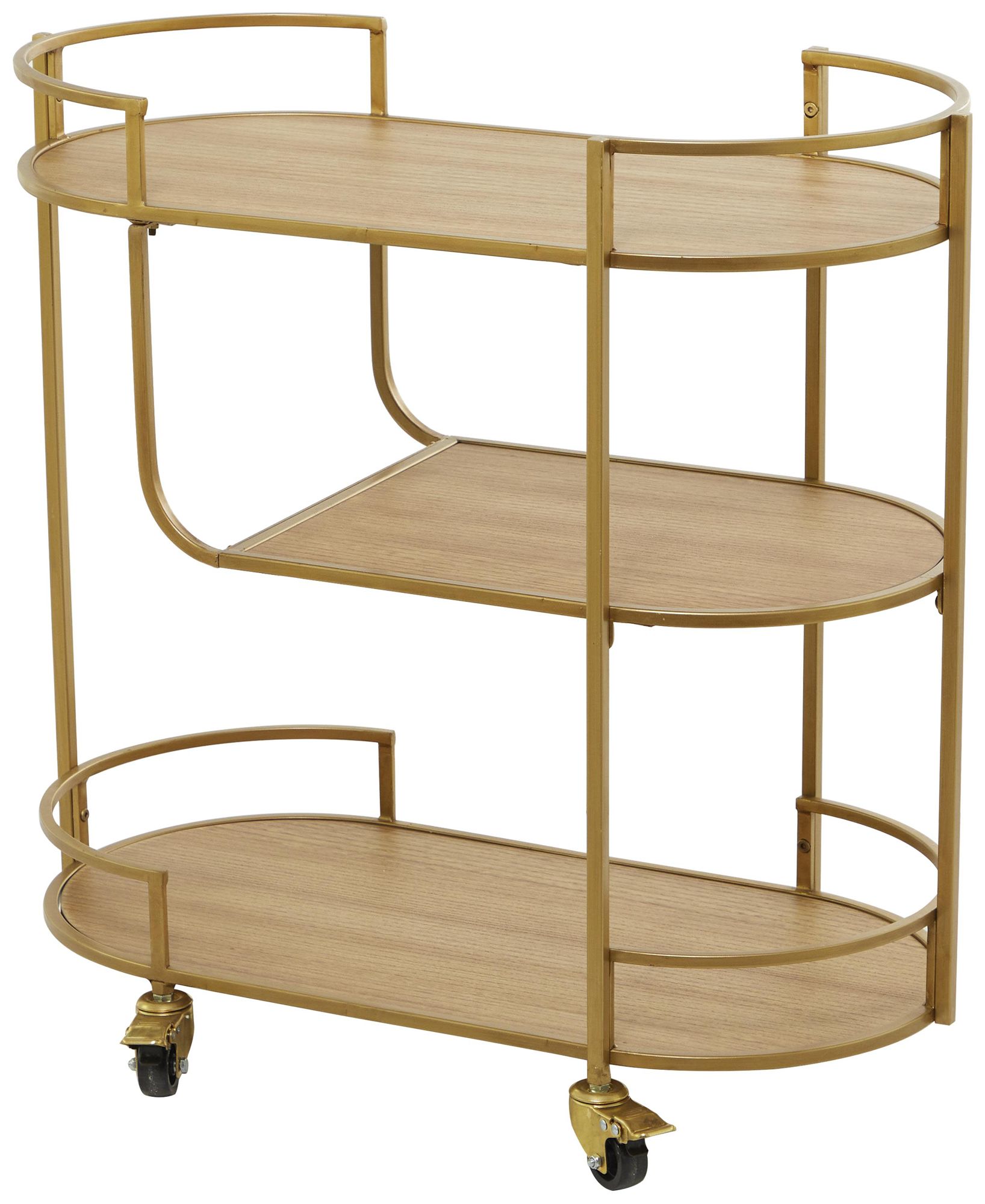 Gold Wood Contemporary Bar Cart, 30" x 15" x 30"