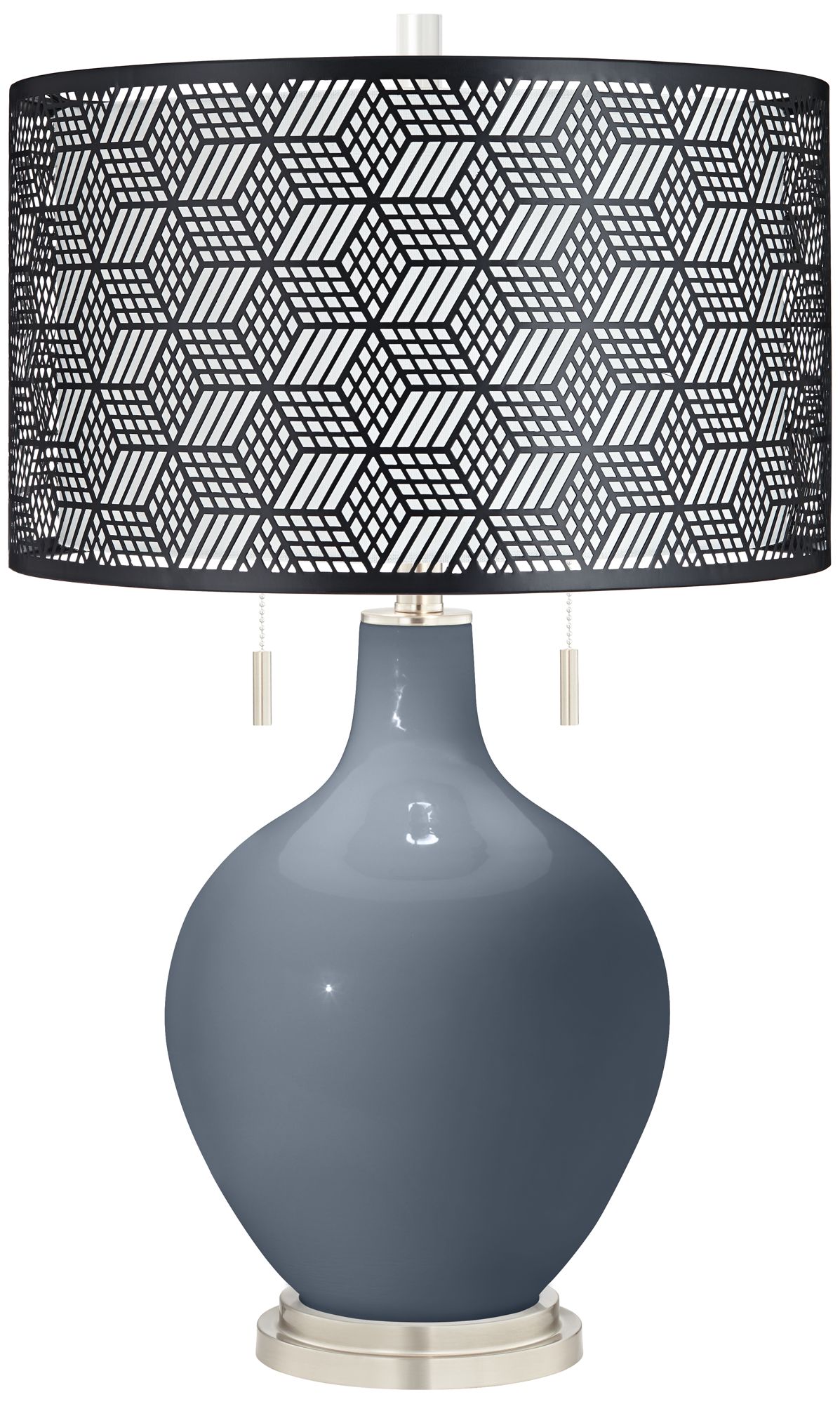 Bring exquisite style and designer color home with the Toby Color + Plus™ table lamp in beautiful Granite Peak. The design is hand-crafted by experienced artisans in California, and is completed by a brushed nickel finish base and pull chains. A black metal drum shade sits on top, drawing the look together in contemporary style. Lamp base U.S. Patent # 8,899,798.