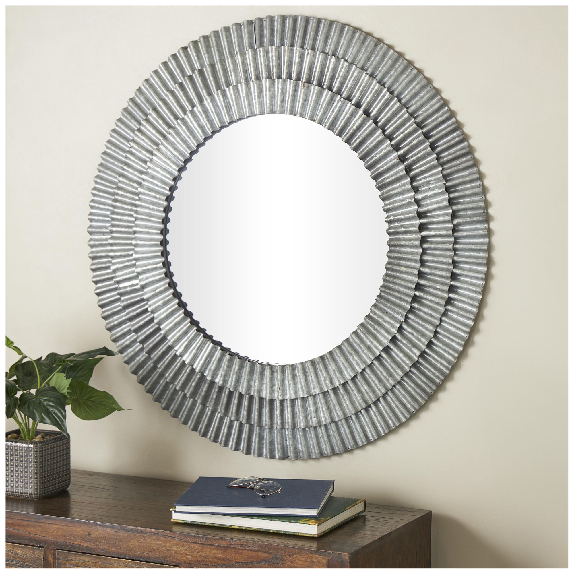 Gray Metal Farmhouse Wall Mirror, 37" x 2" x 37"