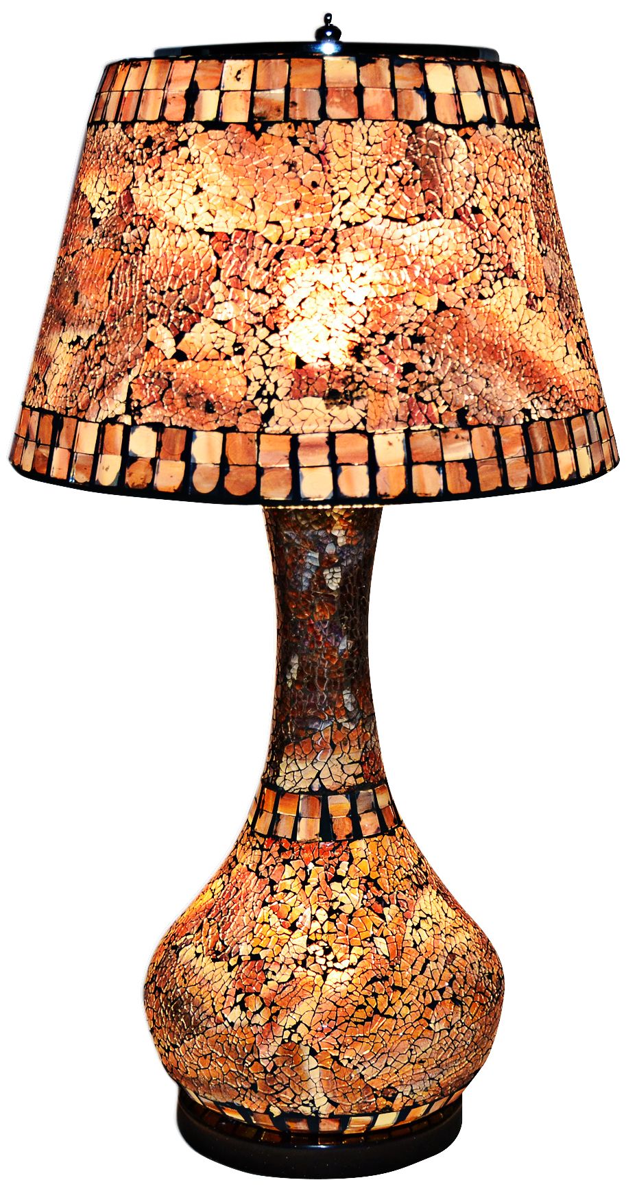 - Dark brown finish that turns amber when the lamp is on.