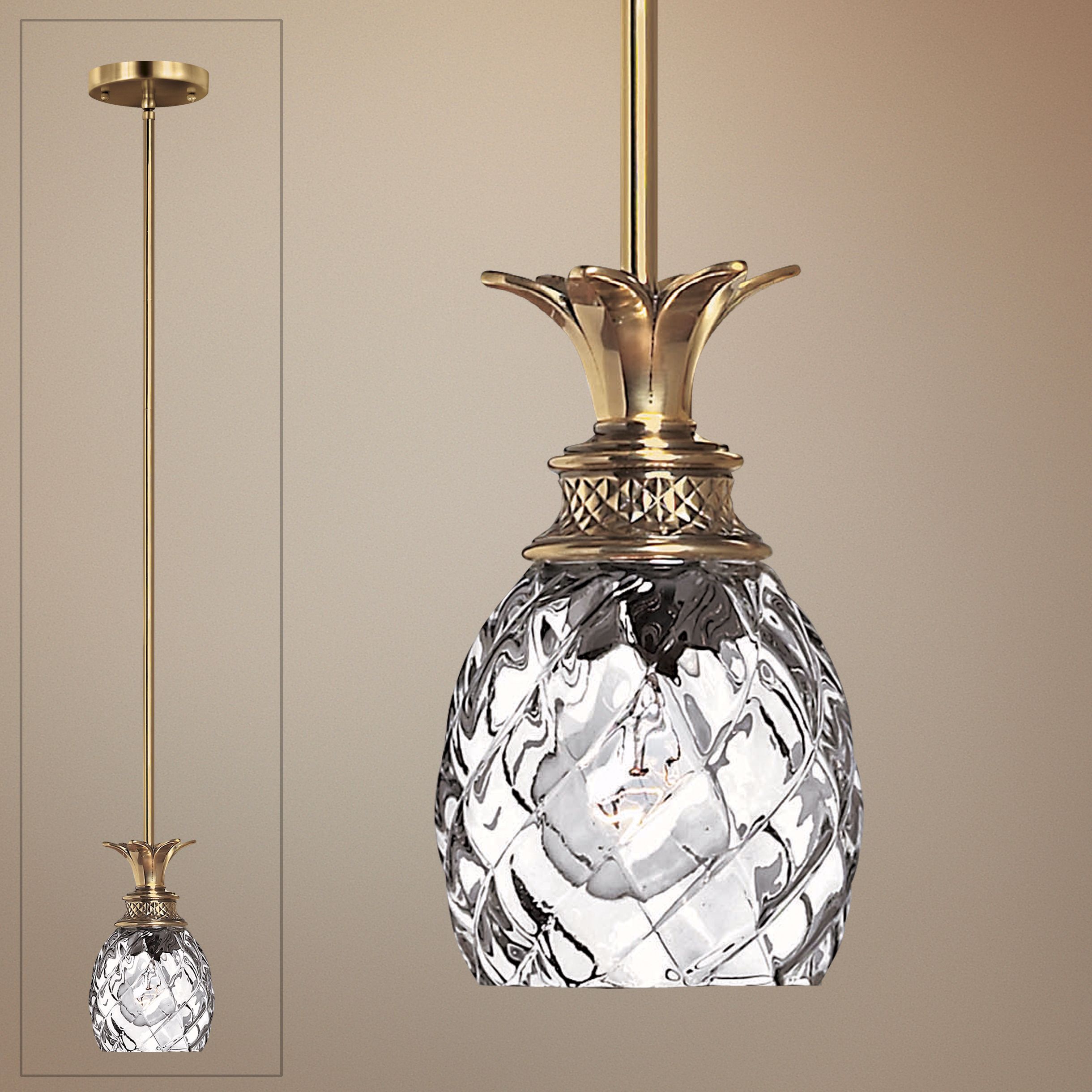 An elegant stem leads to mouth-blown clear glass in this charming pendant light fixture.