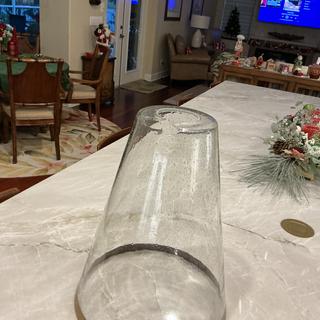 - 18 1/2" high x 13" wide. Round canopy is 6 1/2" wide. Glass is 16 3/4" high x 13" wide. Weighs 6.5 lbs.