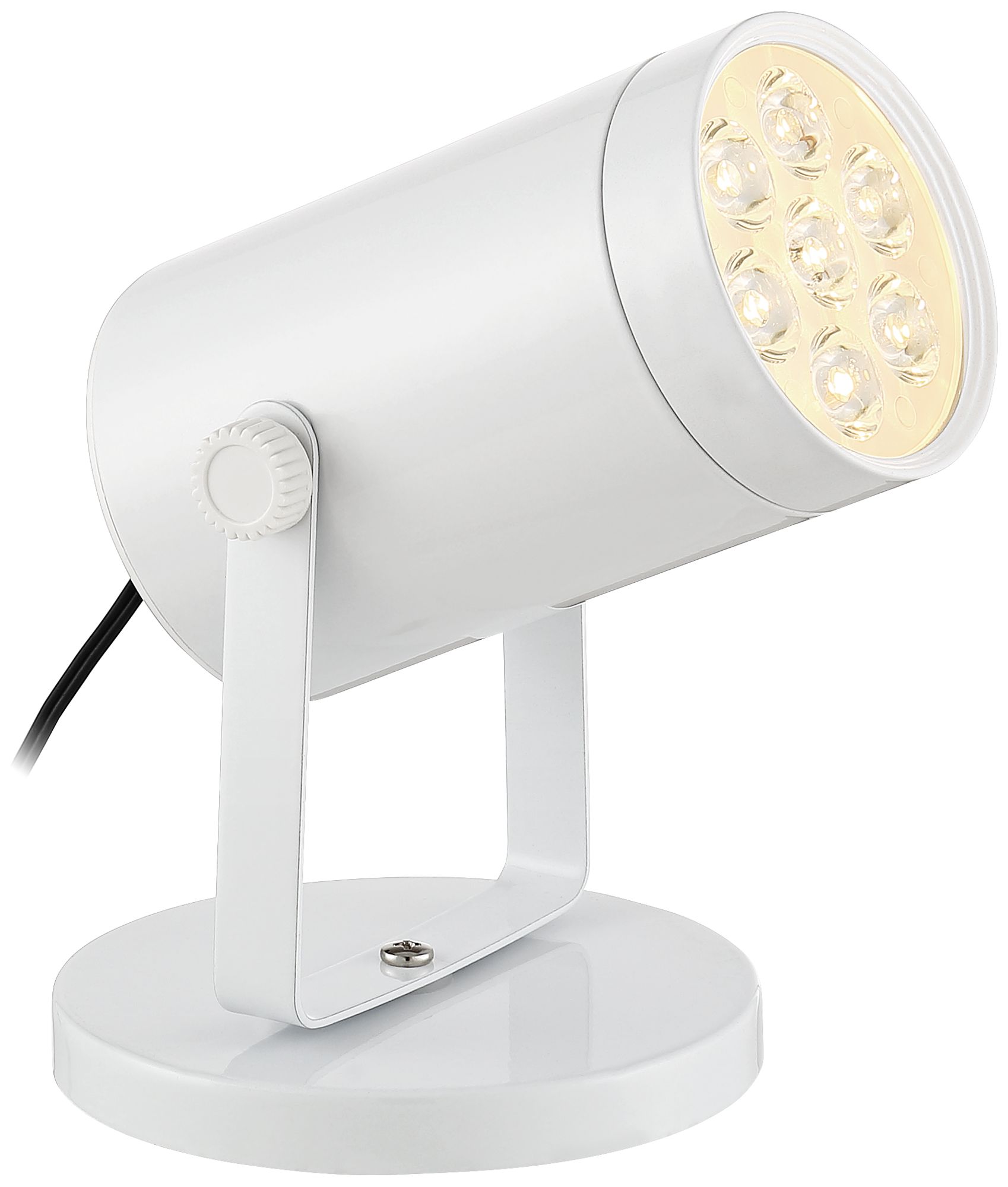 Painted white, this modern uplight features an energy-efficient LED array that offers bright illumination, making it perfect for illuminating plants, artwork, statues, and more. The stylish, long aluminum cylinder head swivels and rotates to direct light just where you want it. This versatile LED fixture is perfect for any room. From the Imperial Collection.