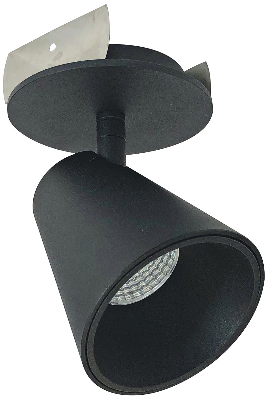Light up the night with this black 4000K cone track ceiling spot light. Made by Nora Lighting, this round cone shaped light is made with die cast aluminum and easily adjusts for customized illumination. Made with energy-efficient LED averaging 50,000 hours at 3 hours per day, this light is Title 24 compliant and ENERGY STAR® rated.