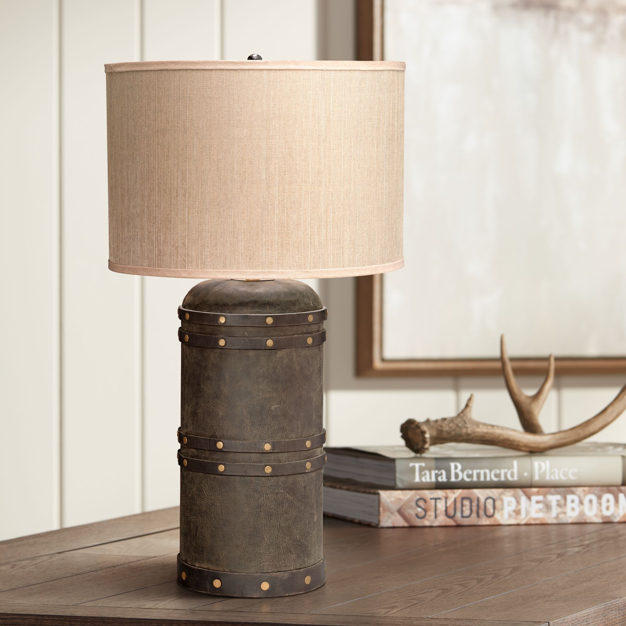 Jamie Young Barrel Vintage Leather Table Lamp