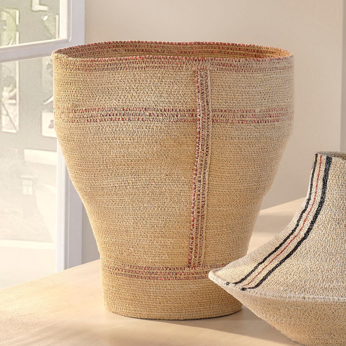 Jamie Young Trophy Seagrass Decorative Basket 15.5" in Orange