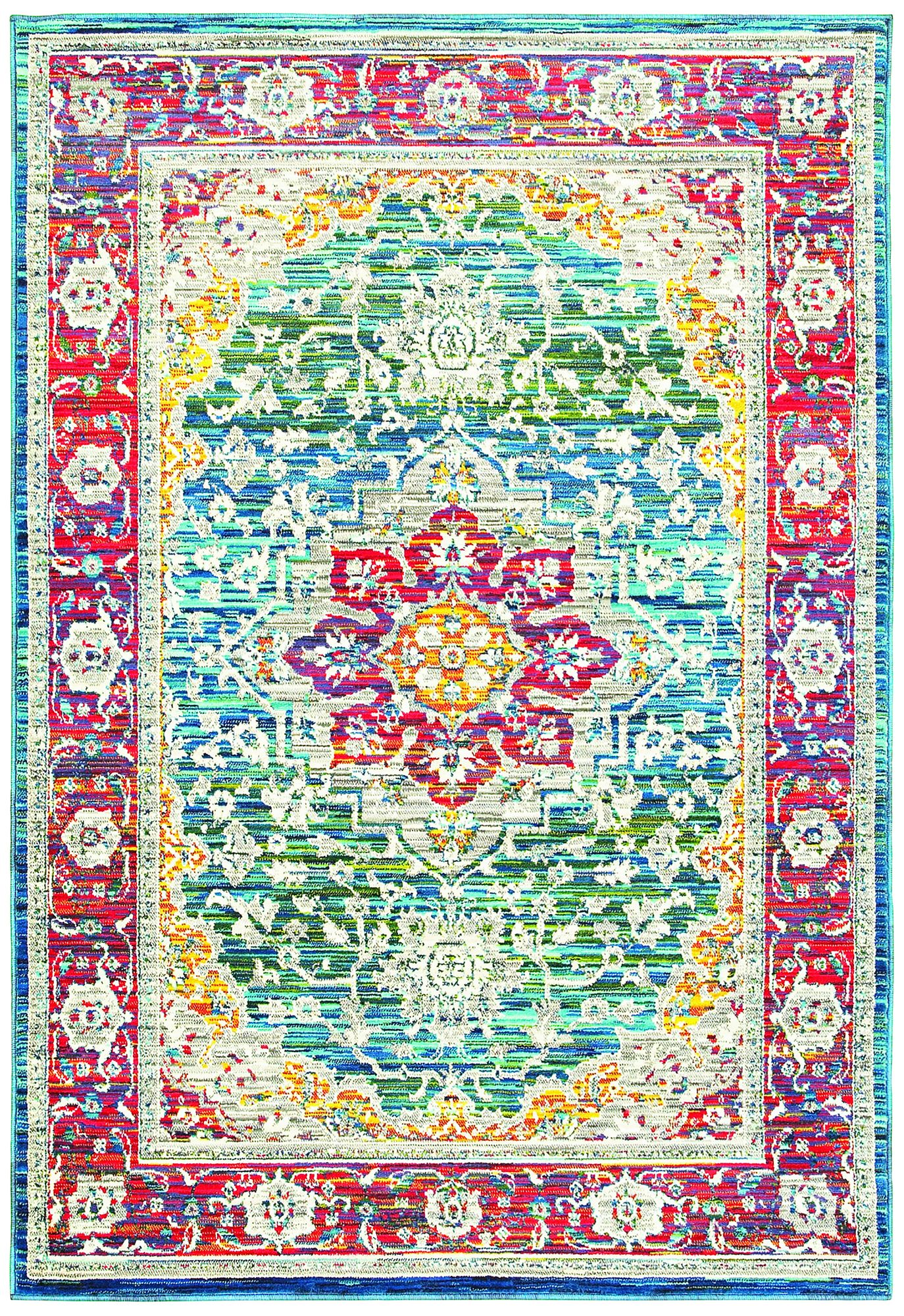 - Multi-color red distressed Oriental and medallion pattern; 100 percent polypropylene construction.