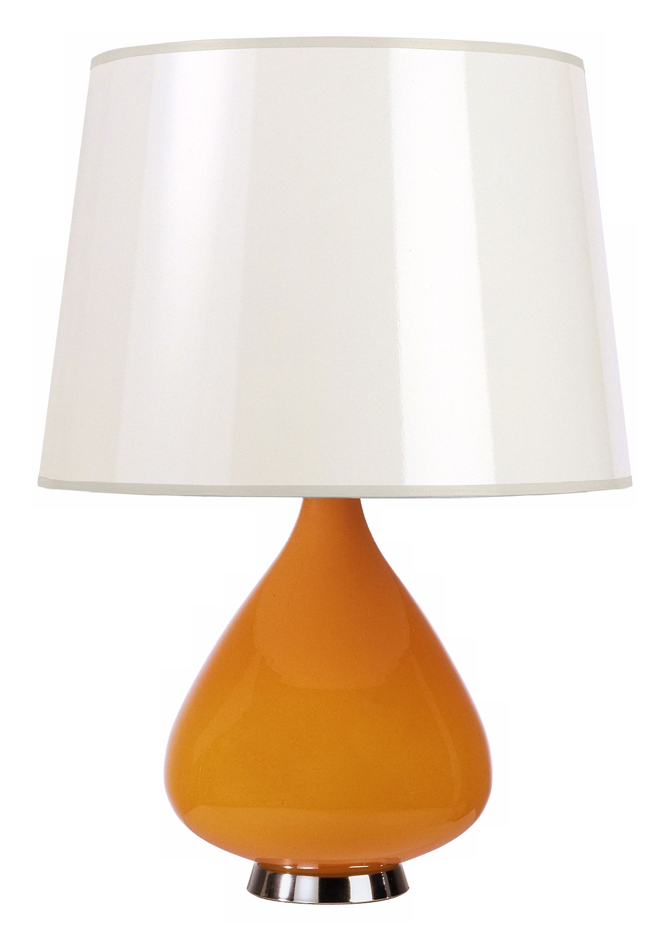 Inspired by the jet set style of Capri, this table lamp adds a little contemporary glamour to any setting. It features a teardrop-shaped orange glass lamp body topped by a translucent ceramic blanco parchment shade. A full-range dimmer is included so that you can easily set the lighting level. Design is by Jonathan Adler for the Robert Abbey lighting collection.