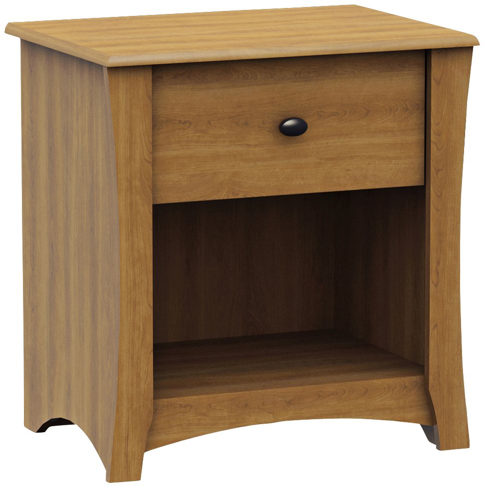 Enjoy the warm-looking harvest maple paper laminate finish on this cottage night stand for a pleasant glow. The piece has 1drawer for ample storage space.