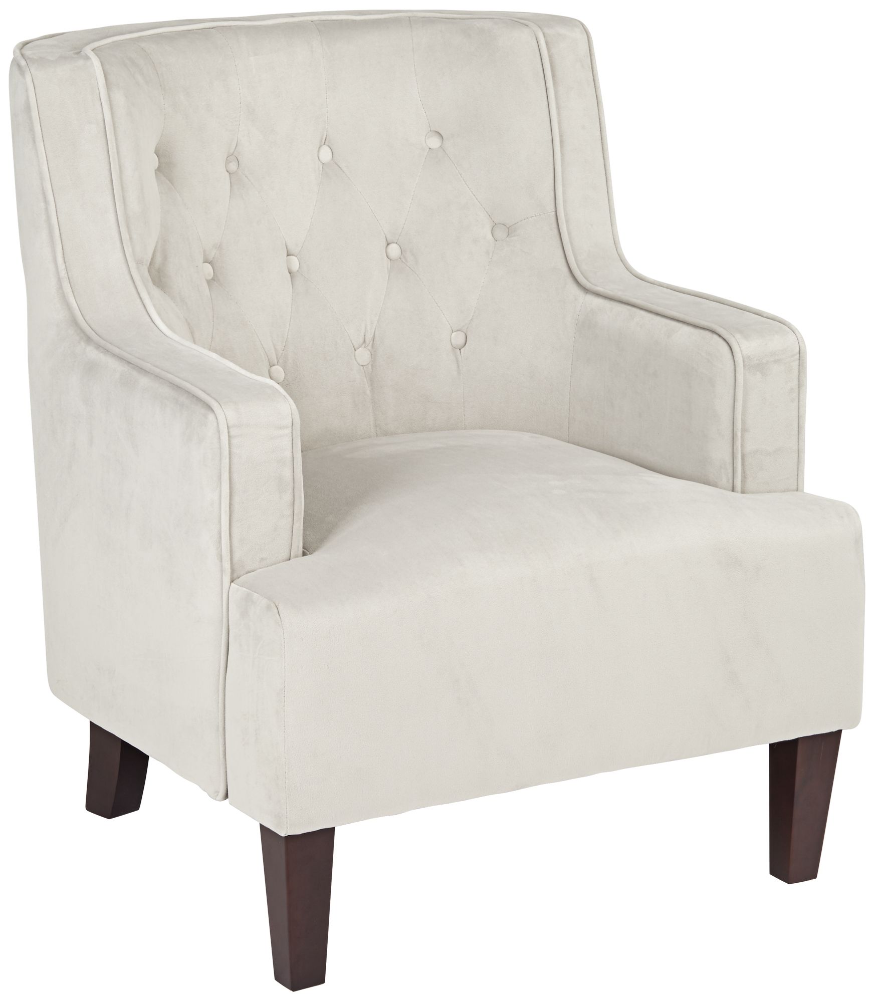 A stylish look with classic appeal, this upholstered accent chair features diamond pattern tufting, wood legs, and chic Belsire gray microfiber upholstery.