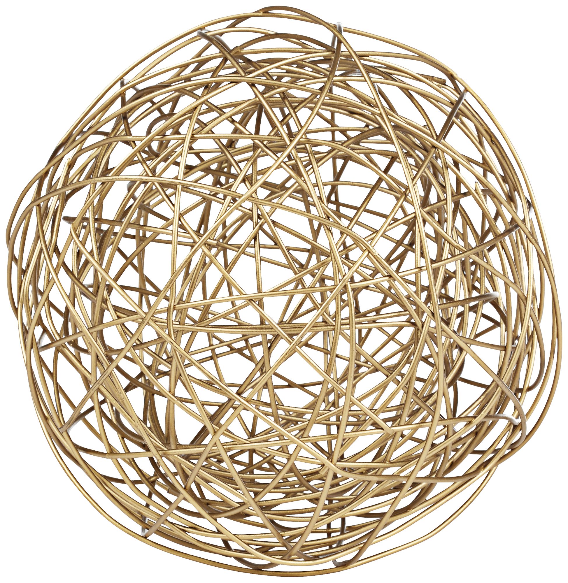 A look of decorative mesh and contemporary style bring a dynamic touch to this large metal wire ball with a gold finish.