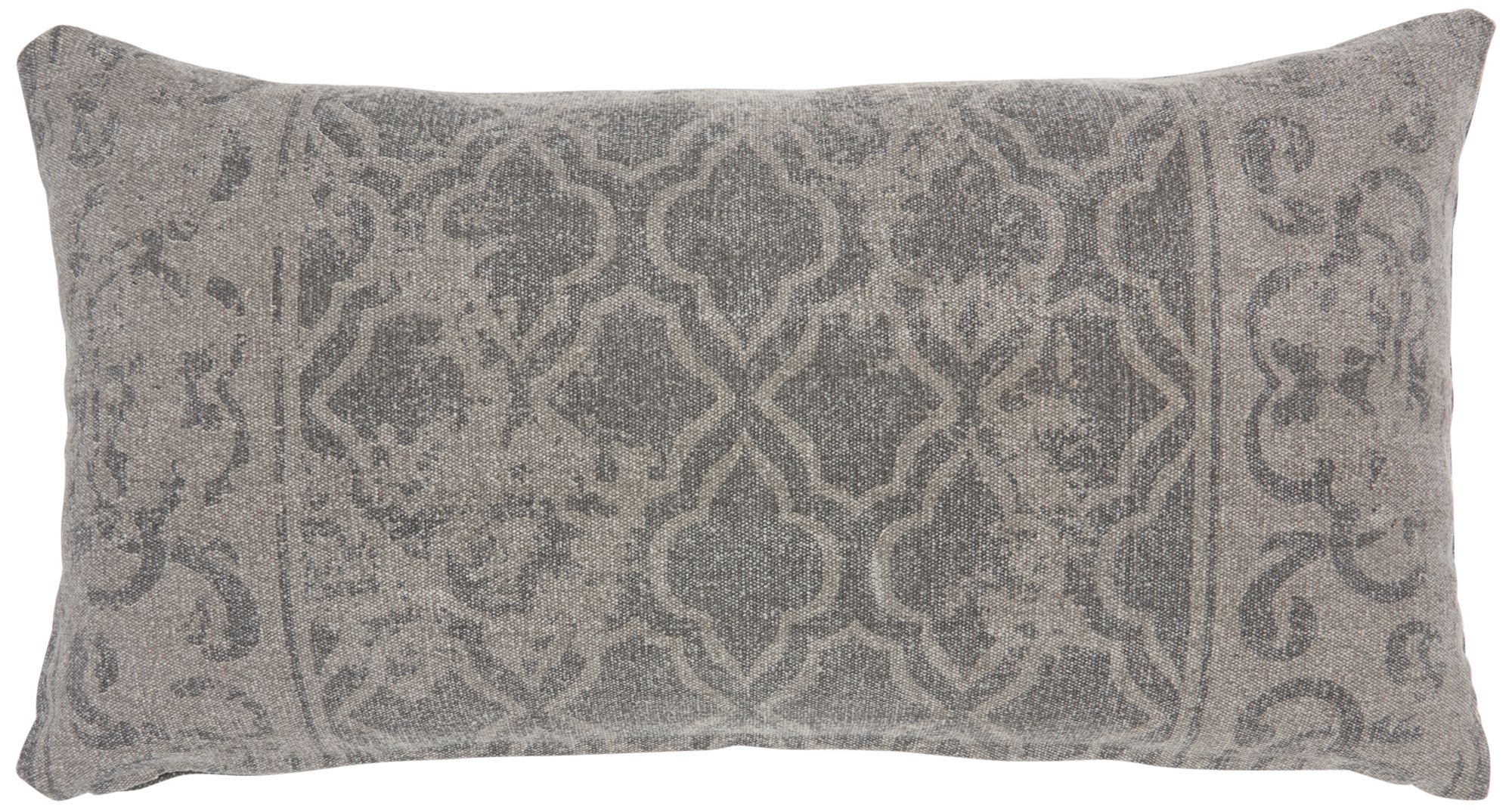 Perfect for both comfort and style, this Southwest-inspired lumbar pillow offers a classic taste of elegance mixed with rustic beauty. This rectangular decorative throw pillow from the Life Styles collection designed by Mina Victory for Nourison offers an iconic old style motif in a distressed gray lattice pattern on front and a solid color back. Wrapped in cotton and filled with polyester, this pillow becomes a go-to element for embellishing any space. Features a zip closure.