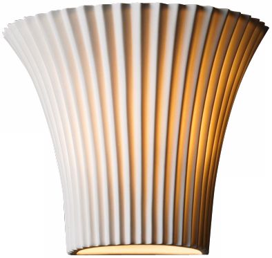 This exquisite wall sconce is notable for the delicate pleated pattern embossed into gorgeous porcelain. This fixture mounts flush for a refined look. Porcelain emits a warm glow making this piece a great choice for any location.