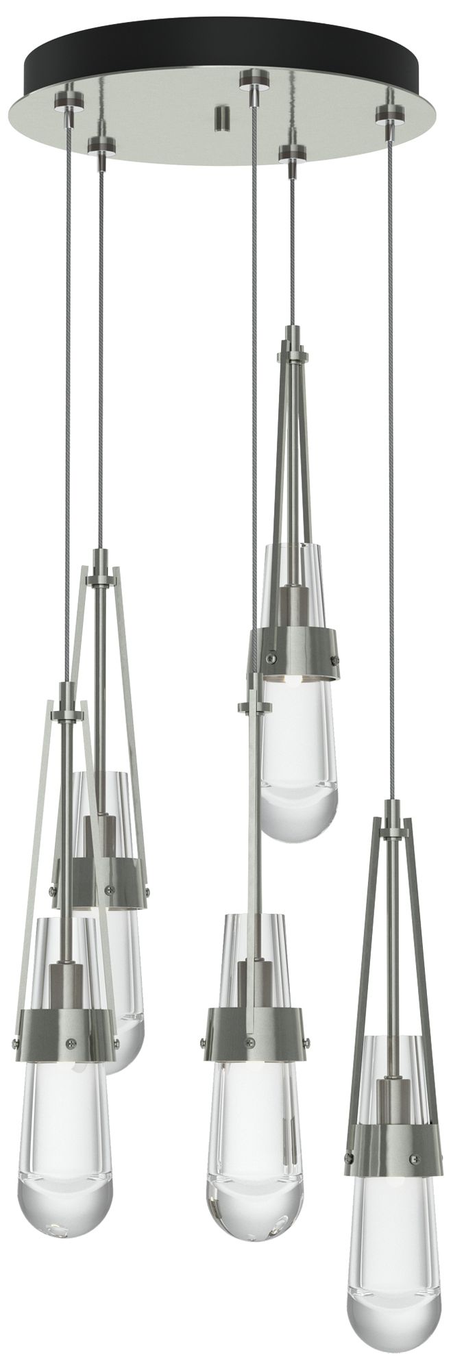 Link 13" Wide 5-Light Sterling Standard Pendant With Clear Glass Shade