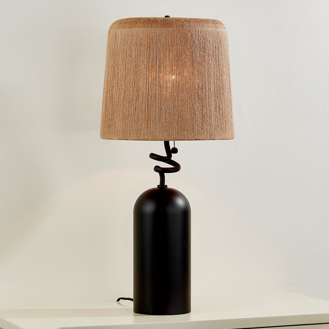 In tribute to novelist Toni Morrison, Morri commands attention with its gestural silhouette. The charred wood lamp body provides a solid base for the artfully twisted neck and woven natural Abaca string shade. The rich tones of the dark wood harmonize with the Forged Iron metalwork, merging durability with lasting beauty. Part of our Loft and Thought collection.*Due to the one-of-a-kind nature of the medium, exact colors and patterns may vary slightly from the image shown.