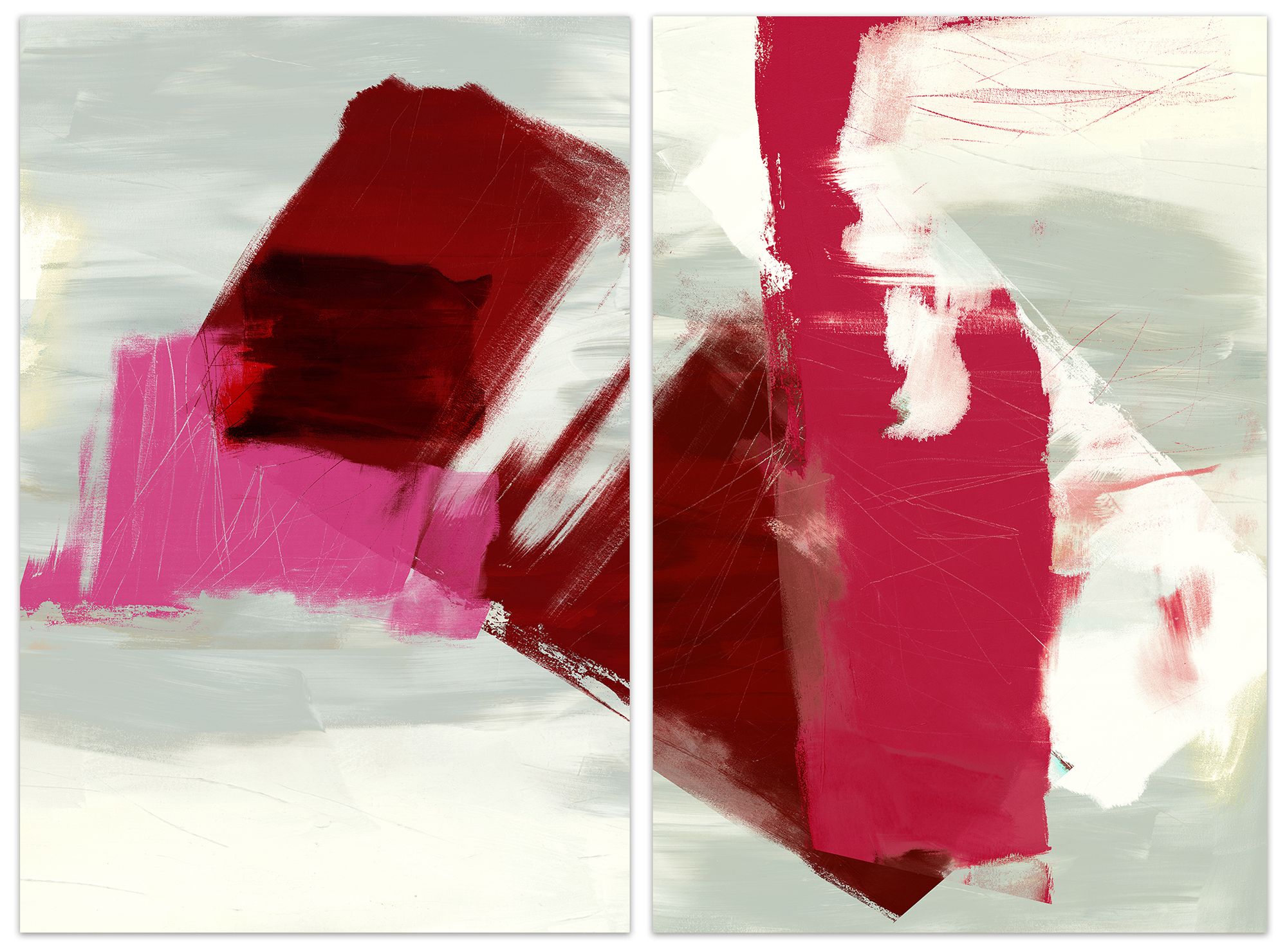 Magenta Abstract 1 & 2 Frameless Free Floating Tempered Glass Wall Art