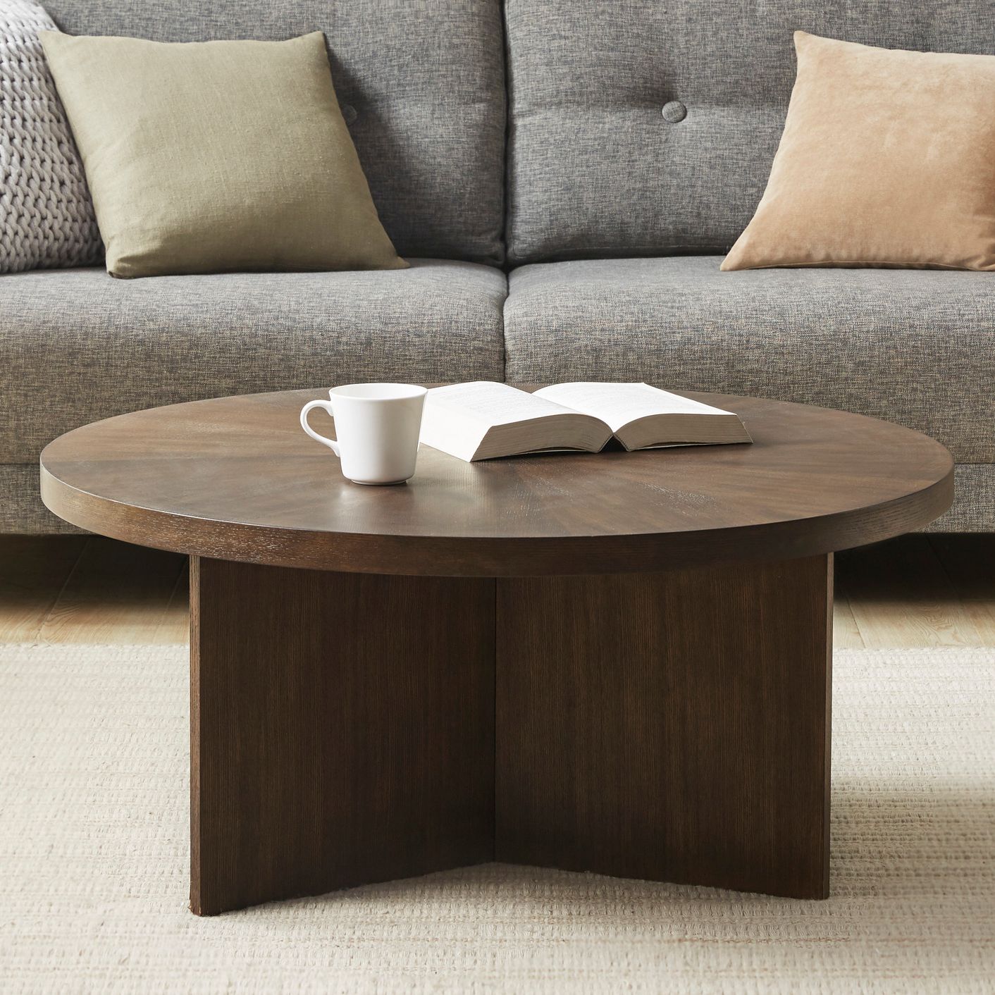 - Martha Stewart Brown Sadie Round Coffee is produced by JLA Home.