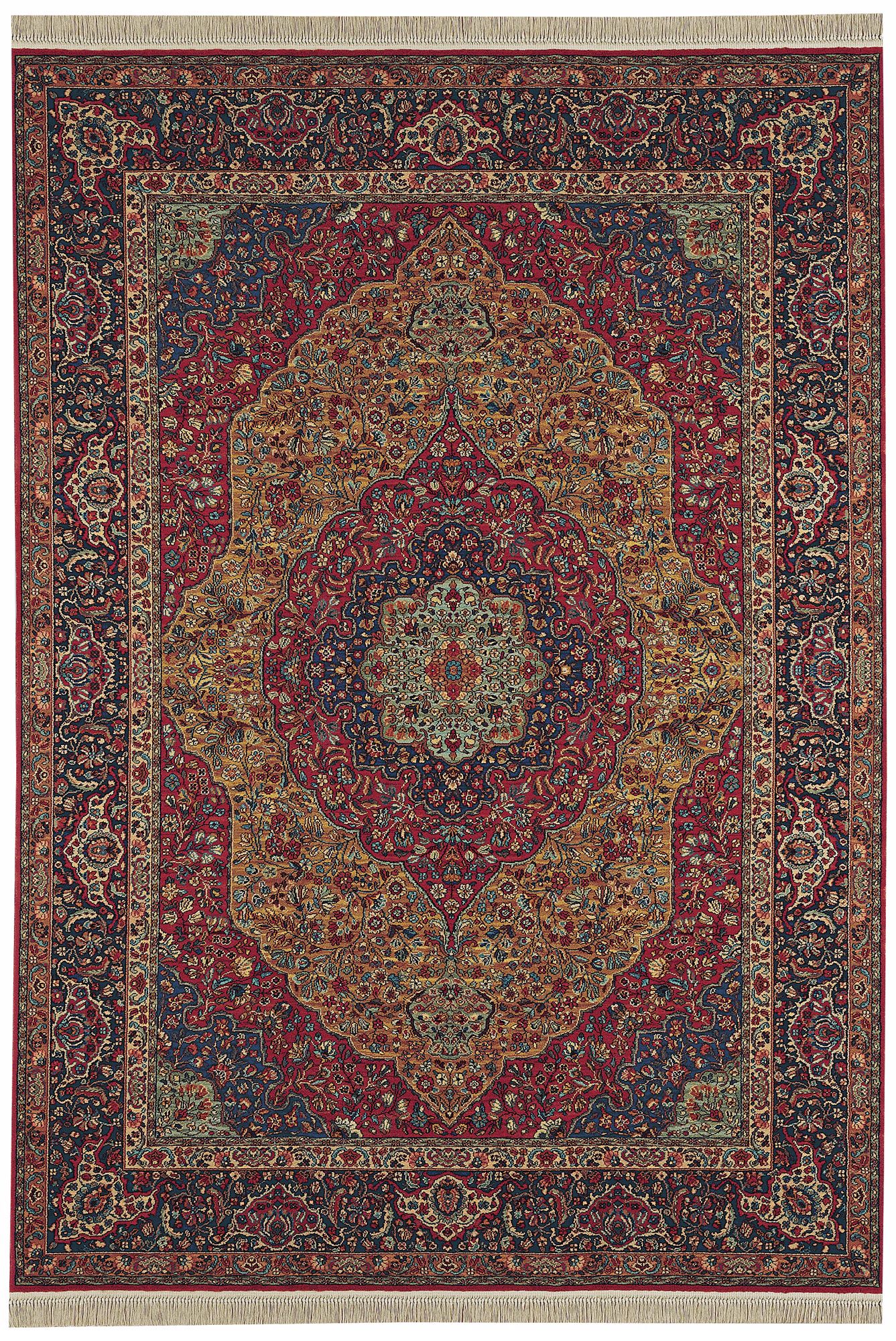 The color palette of this prized rug emphasizes rich indigo blue, brick and madder reds, tobacco golds and browns, olives and accents of soft aqua, soft coral and burgundy. Using many shades of each color gives it the look of old vegetable dyed yarns. Meticulously woven using the finest imported skein-dyed worsted wool yarns in a grand array of magnificent colors, the piece is then lustre-washed and buffed to impart a rich antique patina to the finish. From the Original Karastan collection by Karastan, maker of the finest Oriental style rugs since 1928.