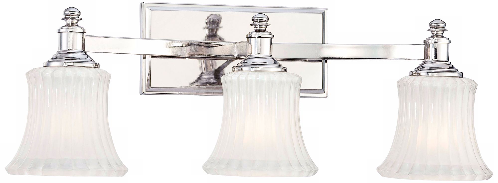 A gorgeous mix of form and function, this three light bath wall light has both style and grace. The polished nickel finish adds dimension, while the ribbed, etched glass shade lends to its old world charm. It can be mounted with the glass facing up or down for even more versatility.