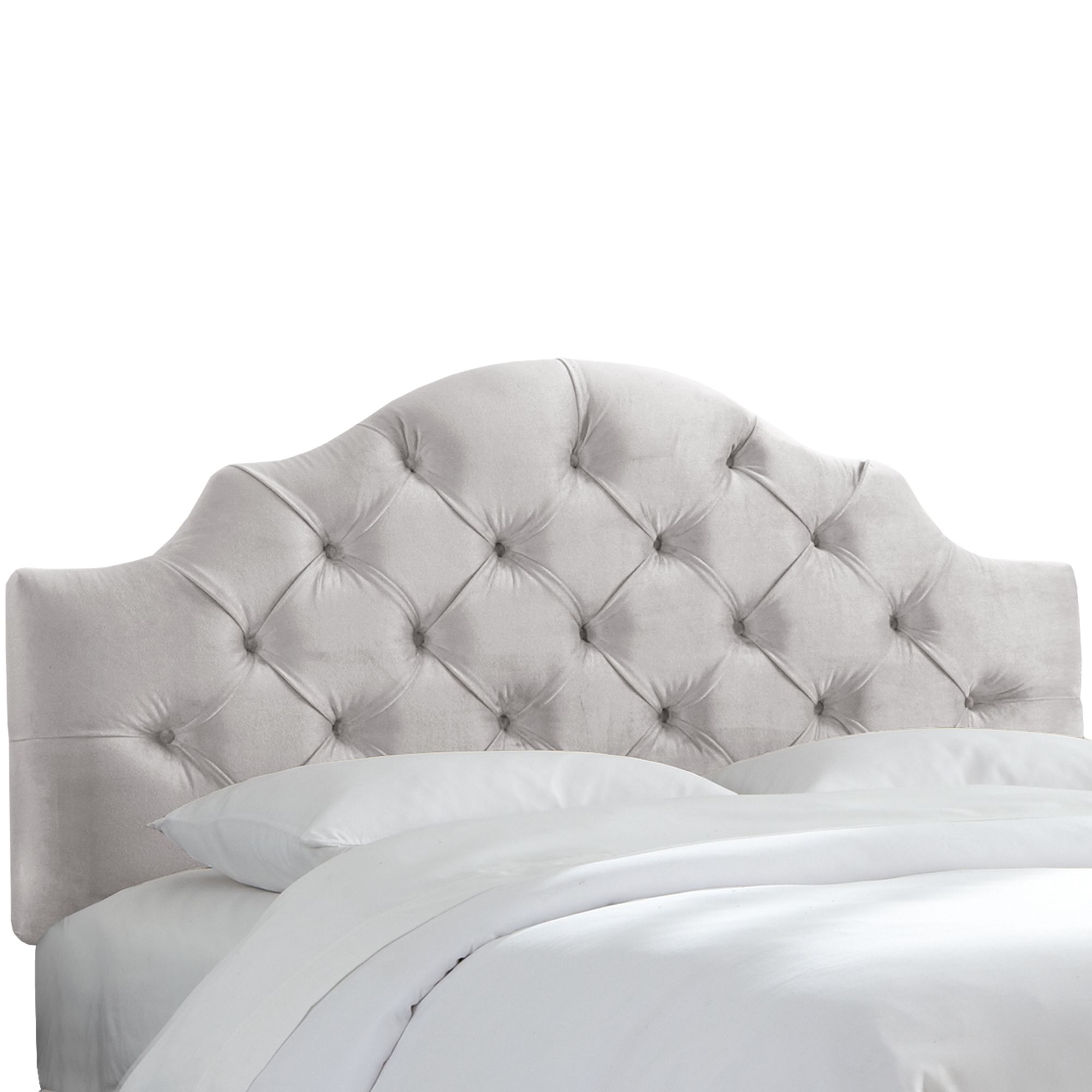 Made in the U.S.A., this beautifully-tufted cushioned bed headboard is covered in a stylish warm light dove fabric.
