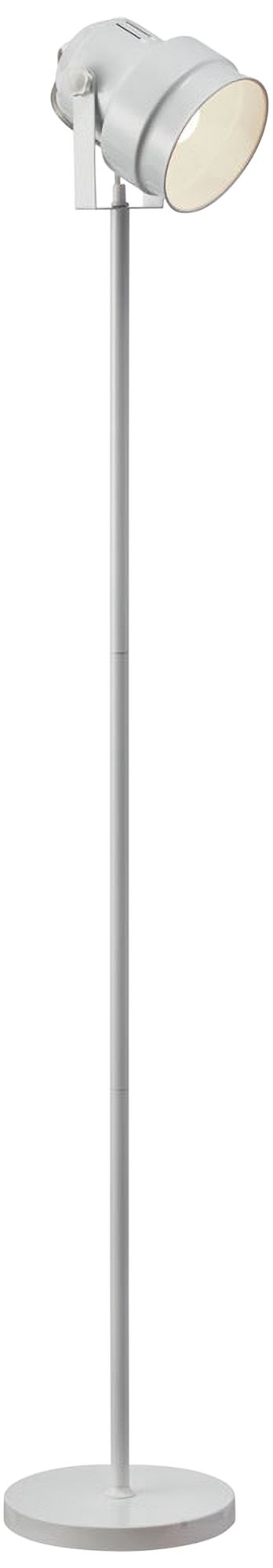 Light up your desk or sectional sofa with the cool, stylish look of this metal spotlight floor lamp. In a crisp matte white finish, the lamp boasts an adjustable spotlight head that directs lighting to the precise spot you need it. A slender body and round base enhance the compact silhouette this lamp presents.