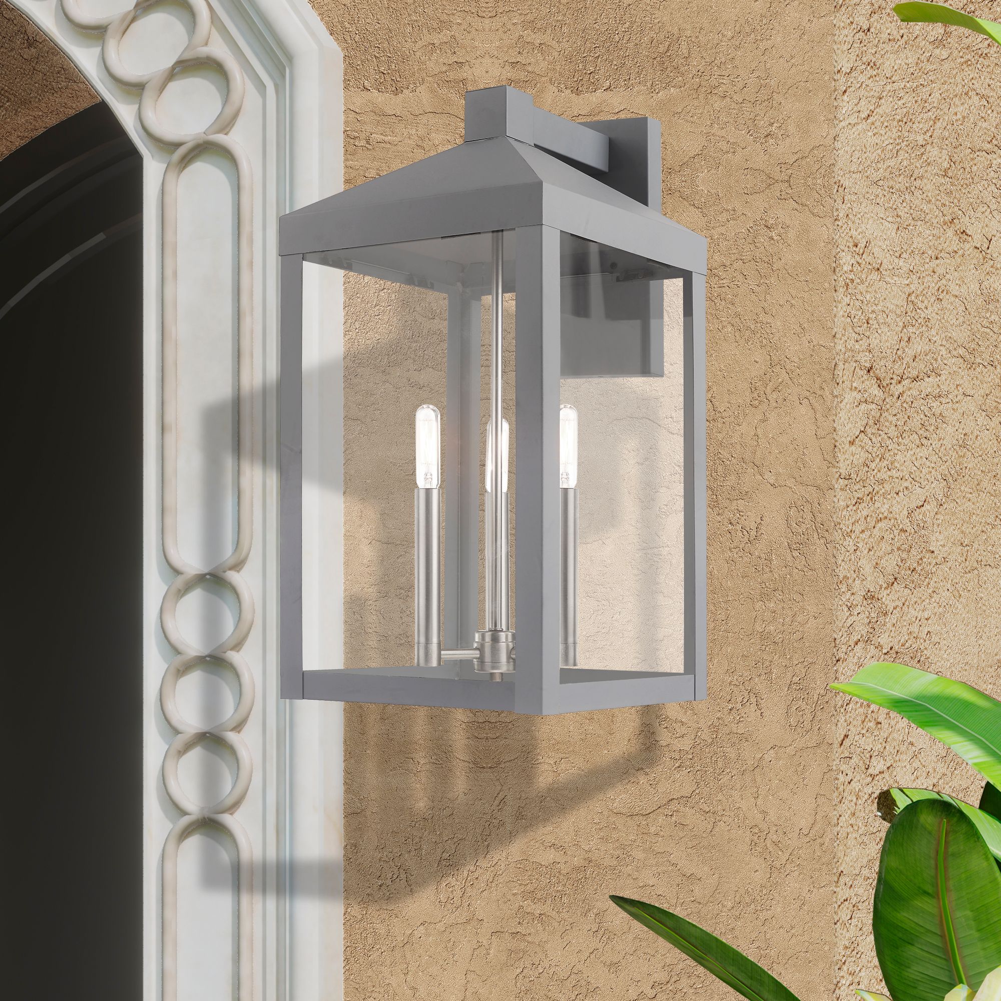 - 3 Light Nordic Gray Outdoor Wall Lantern is produced by Livex Lighting, Inc..