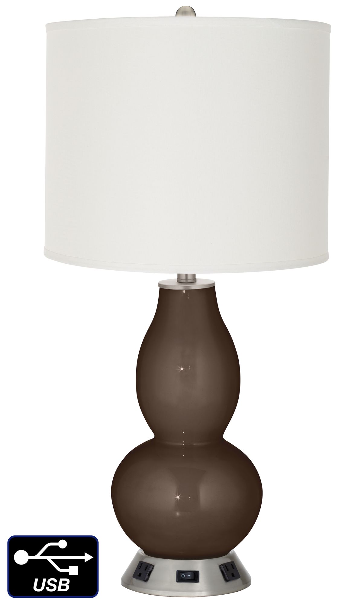2 convenience outlets and 1 USB port bring convenience to this Carafe brown gourd table lamp.