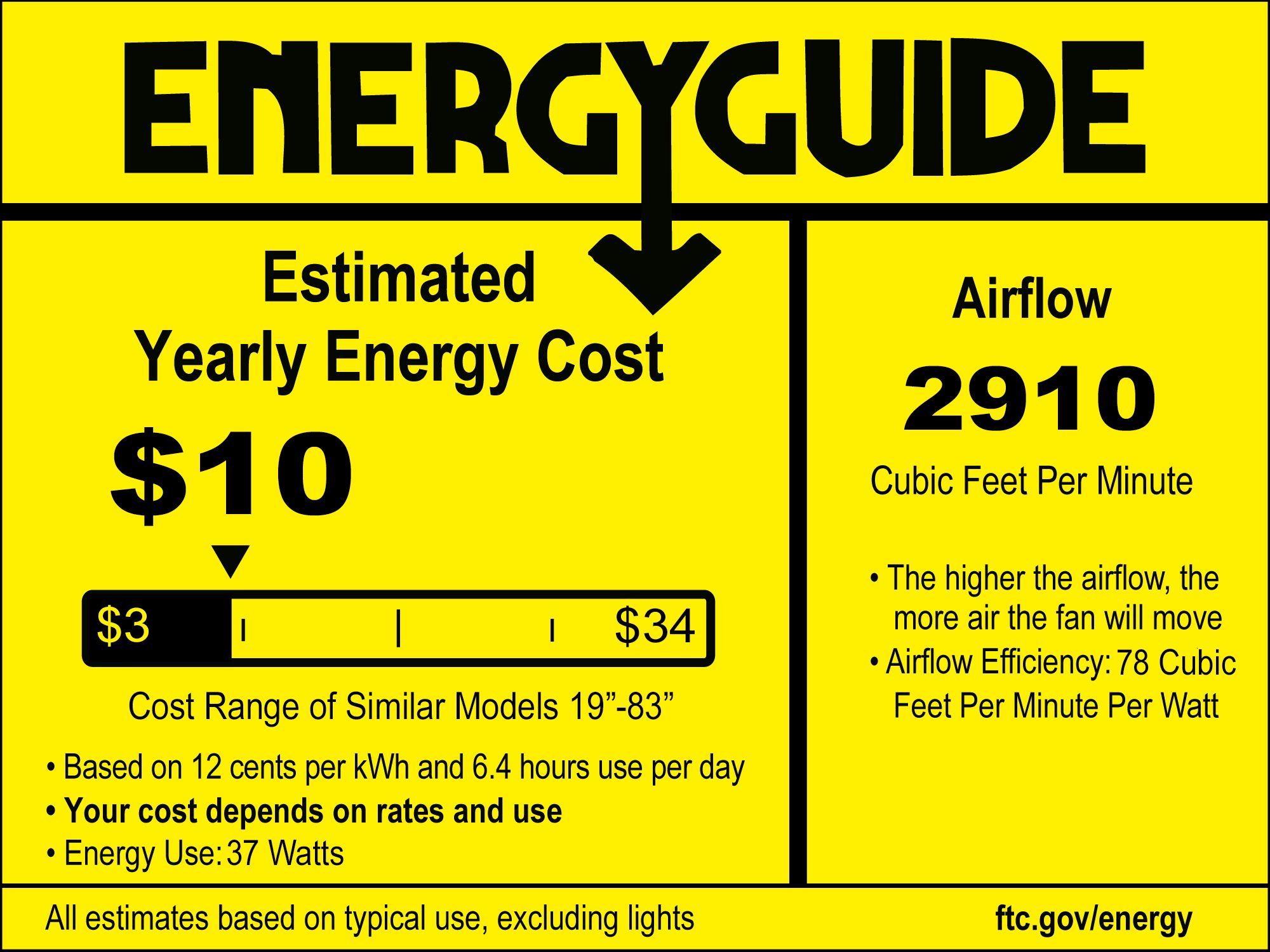 | Airflow | 2910 (Avg CFM) / 4237 (High CFM) |