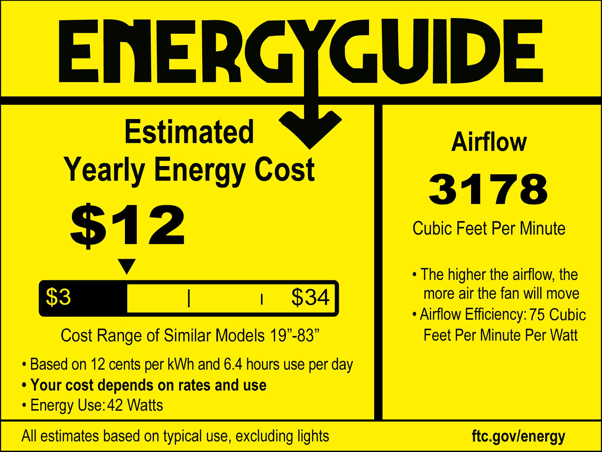 | Airflow | 3178 (Avg CFM) / 4168 (High CFM) |