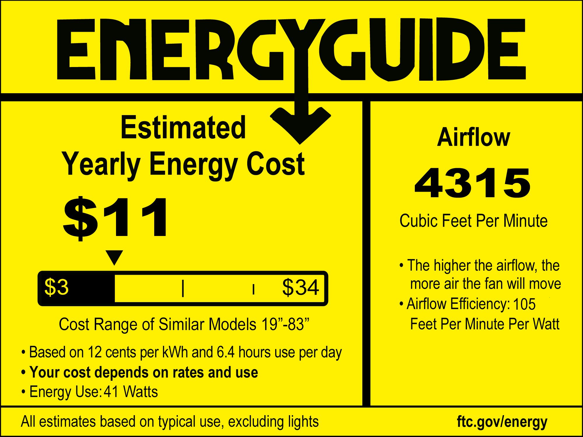 | Airflow | 4315 (Avg. CFM) / 6968 (High CFM) |