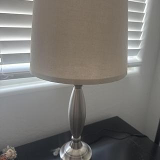 This simple and classic design will look great in a living room or bedroom. The touch lamp design allows you to easily tap or touch anywhere on the base to turn it on and off. Brass finish metal base. Topped with a light white colored lamp shade.