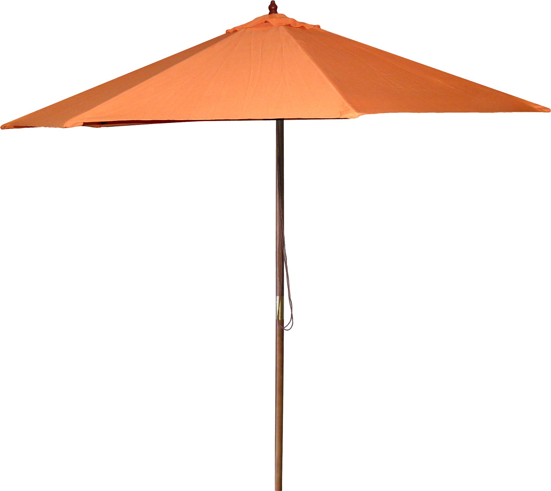 A bright pop of color, this orange wooden patio umbrella features a pulley system for raising and lowering the polyester canopy and durable wooden construction designed to provide ample sun protection.