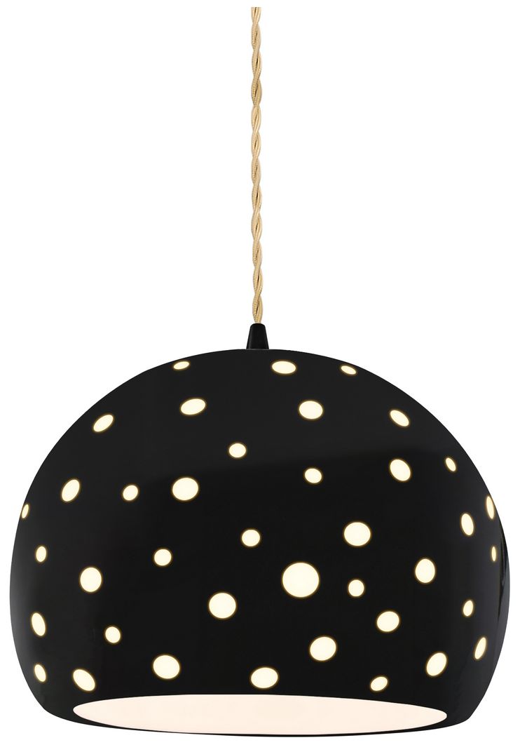 Perforated Globe 10"W Gloss Black, Matte Black LED Pendant - Rigid Stem