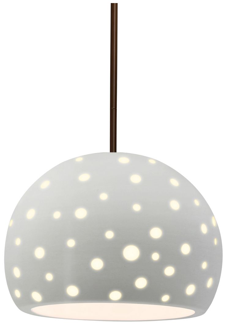 Perforated Globe 10"W Matte White, Dark Bronze Pendant - White Cord