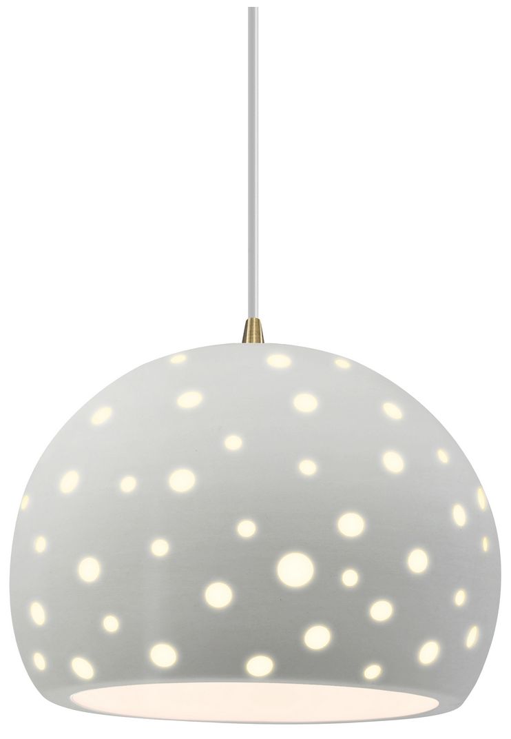 Perforated Globe 10"W Matte White, Polished Chrome Pendant - Rigid Stem