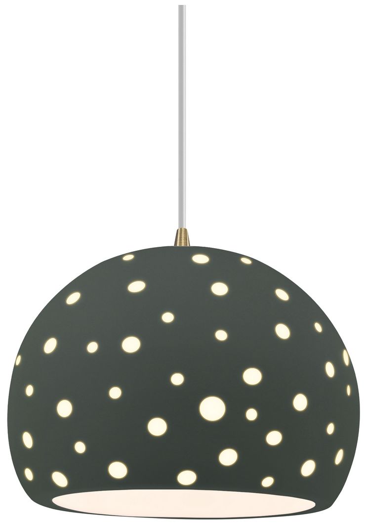 Perforated Globe 10"W Pewter Green, Chrome LED Pendant - Rigid Stem