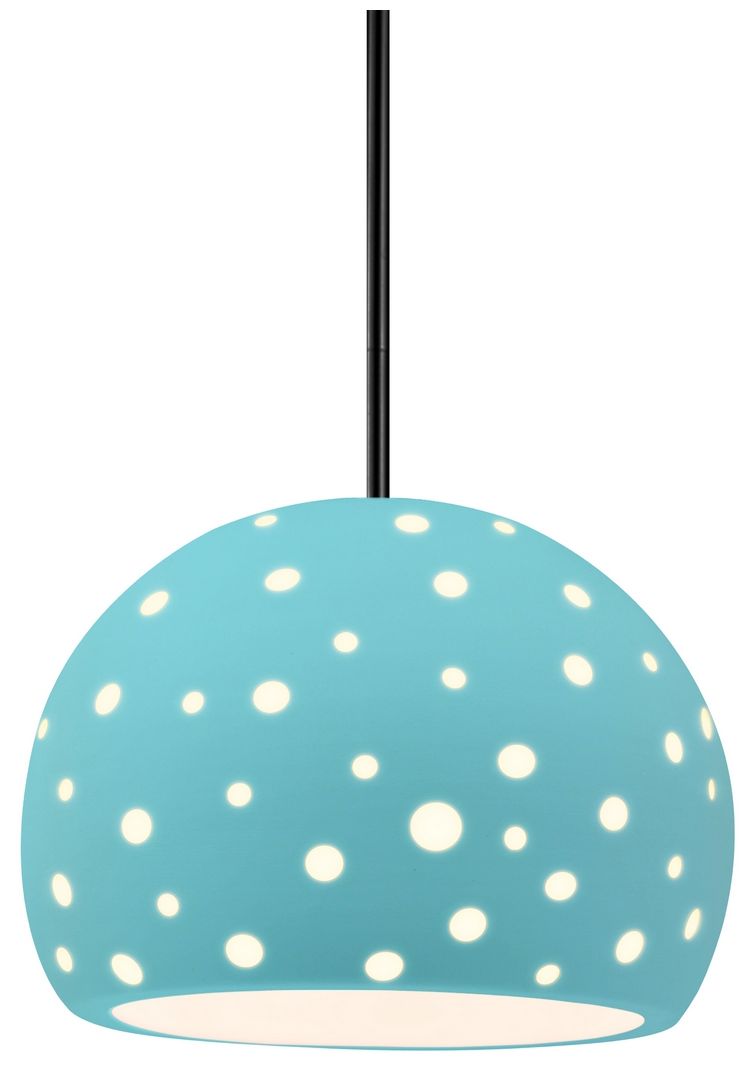 Perforated Globe 10"W Reflecting Pool, Matte Black Pendant - White Cord