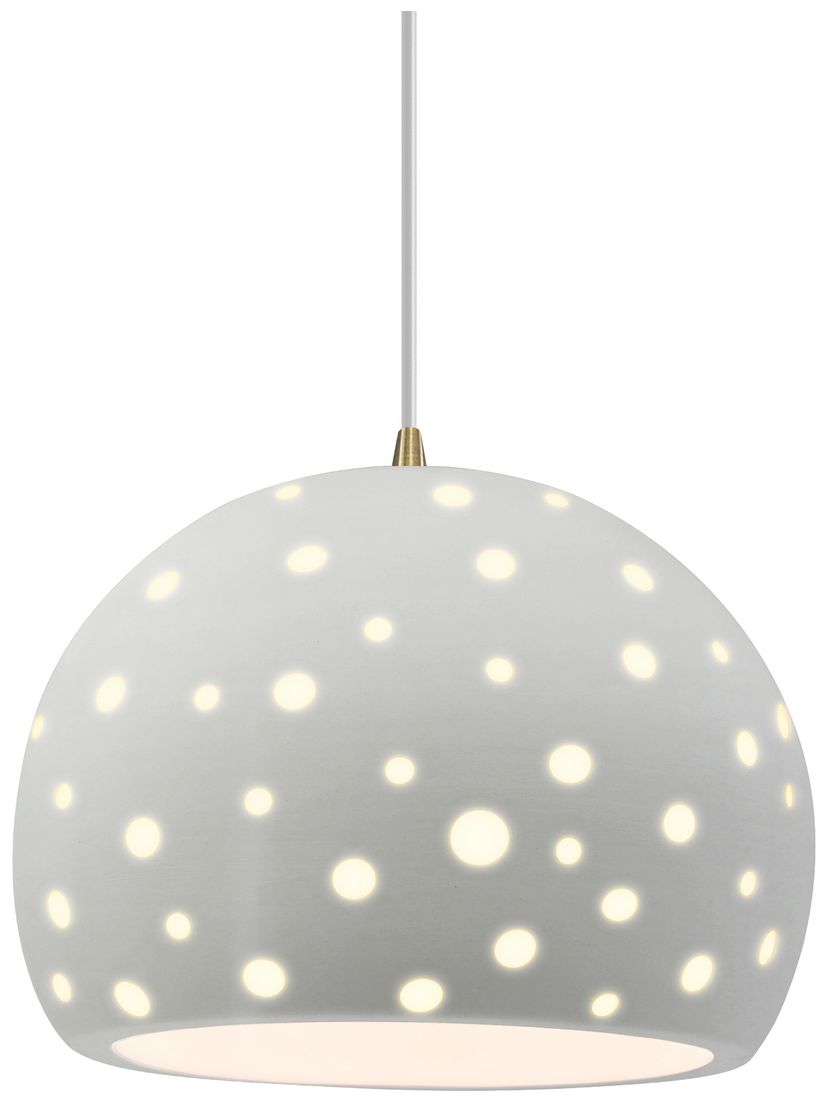 Perforated Globe 12.25"W Matte White, Polished Chrome Pendant - Rigid Stem