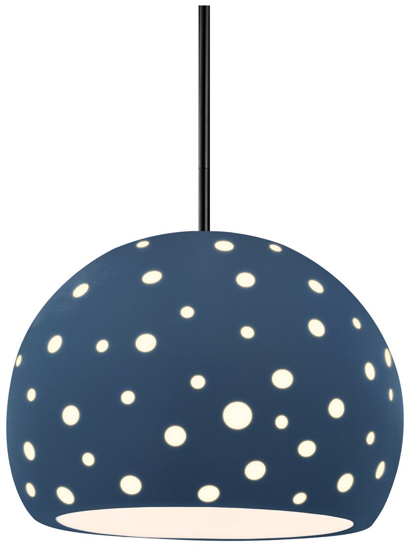 Perforated Globe 12.25"W Midnight Sky, Matte Black Pendant - White Cord