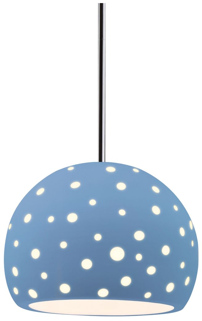 Perforated Globe 7"W Sky Blue, Polished Chrome Pendant - White Cord