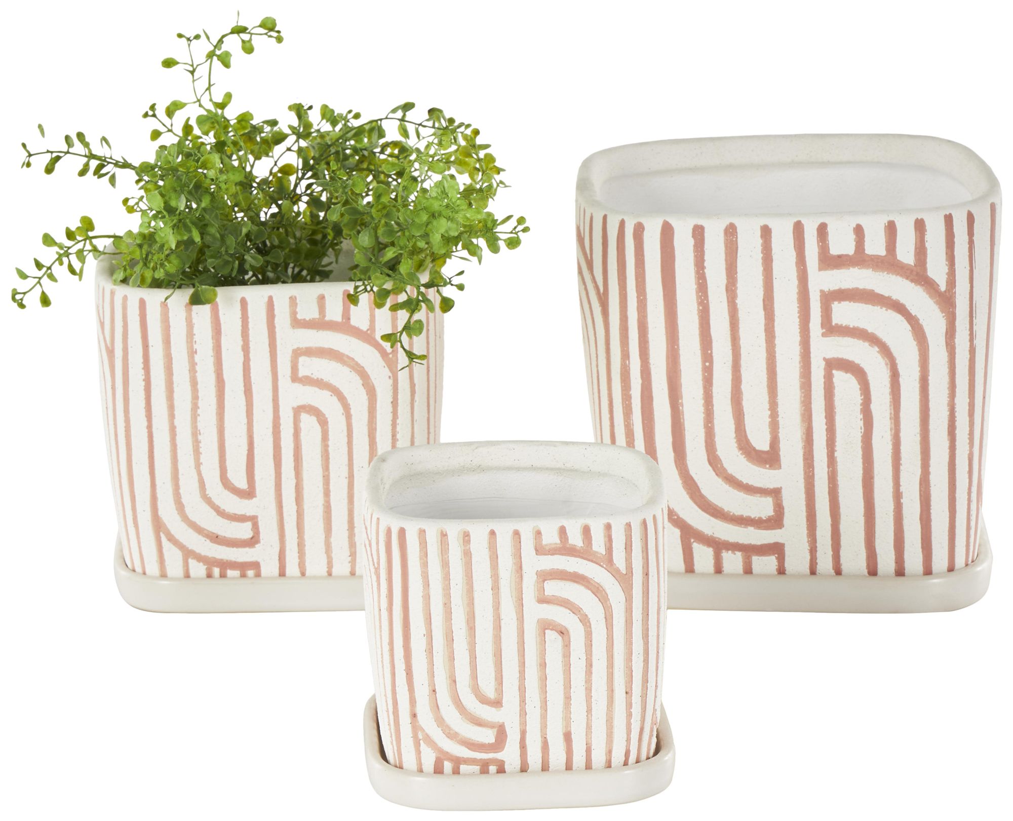 Pink Ceramic Modern Planter, S/3 7", 6", 5"H
