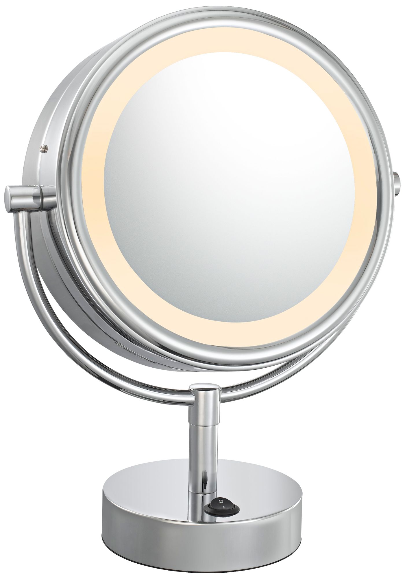 This easily transportable LED lighted standing vanity mirror makes it easy to get ready anywhere in the home. The polished nickel finish adds a beautiful touch to any decor.