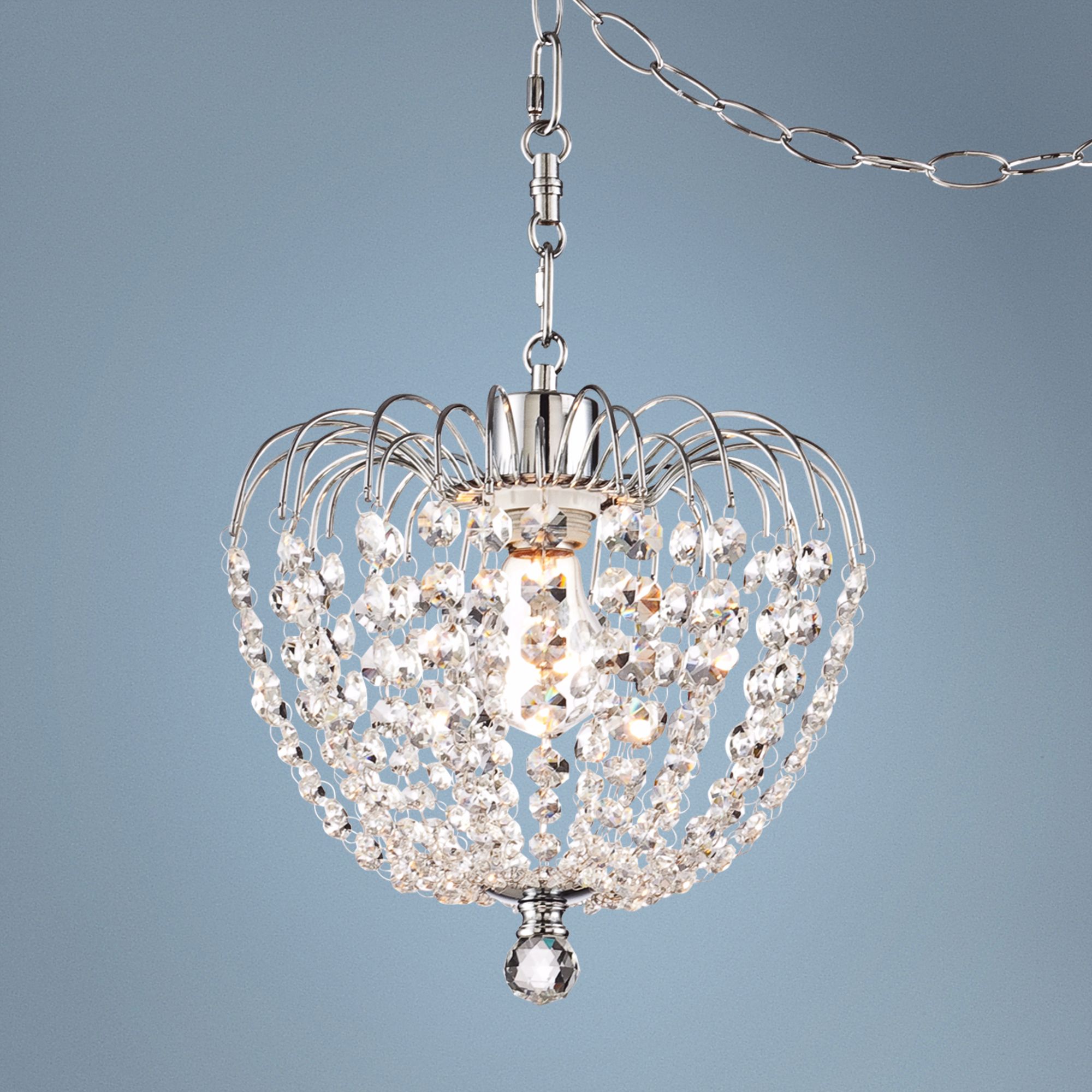 Add decadent modern elegance to your home with this plug-in swag pendant light. Finished in sleek chrome and adorned with gleaming crystals, this design will add brilliant shine to your home. Hang this exciting design anywhere it suits you, and plug in to an outlet. This item cannot be hardwired. From Possini Euro Design.