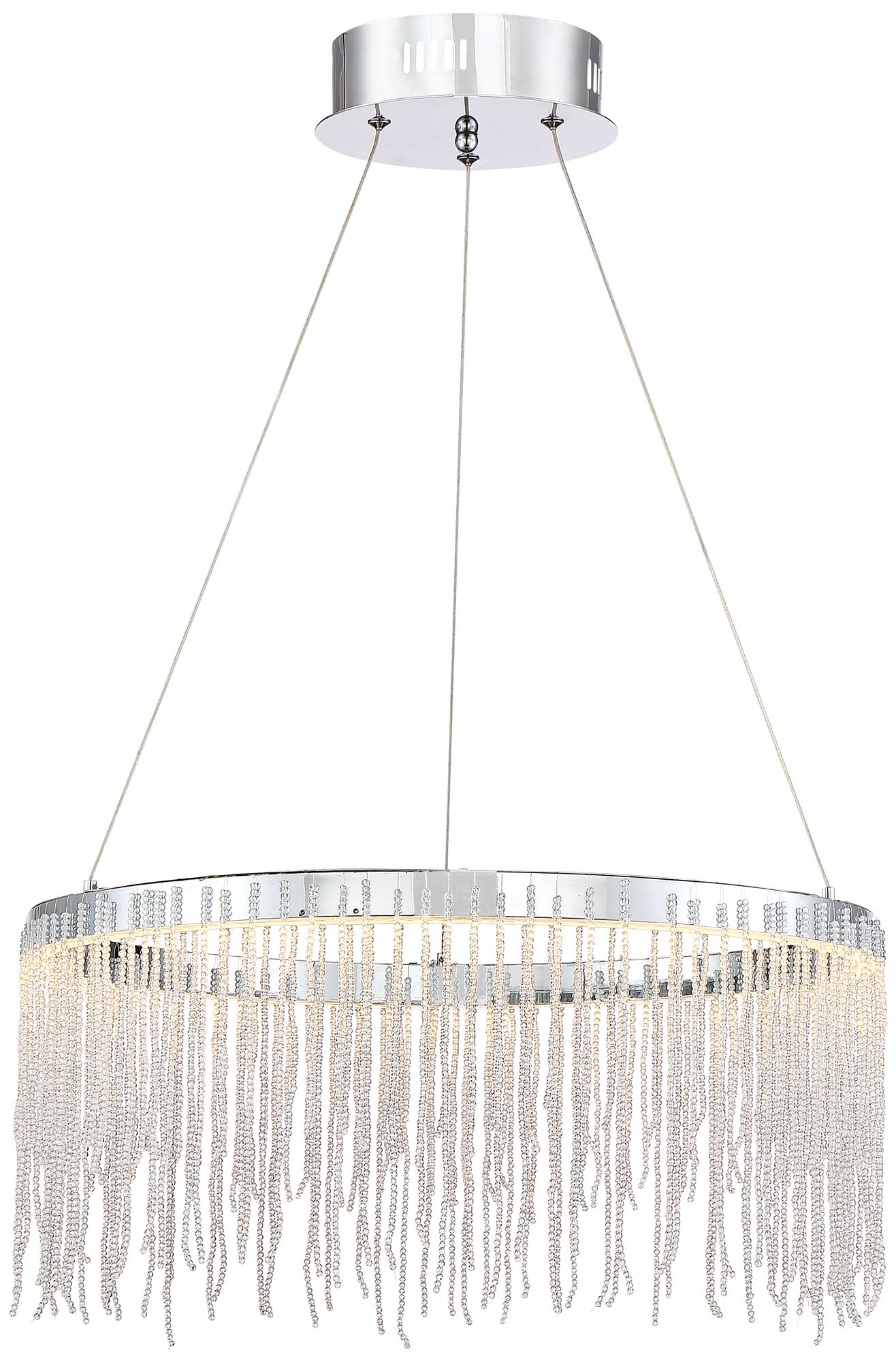 Make a statement with this contemporary energy-efficient LED drum pendant from Possini Euro Design®. A stunning chrome finish ring reinforces this stylish light fixture. Strands of gorgeous crystal accents decorate this lustrous frame for a striking effect.