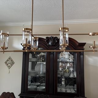 - Uses six maximum 60 watt Type-B candelabra base light bulbs (not included). Shown with clear glass bulbs.