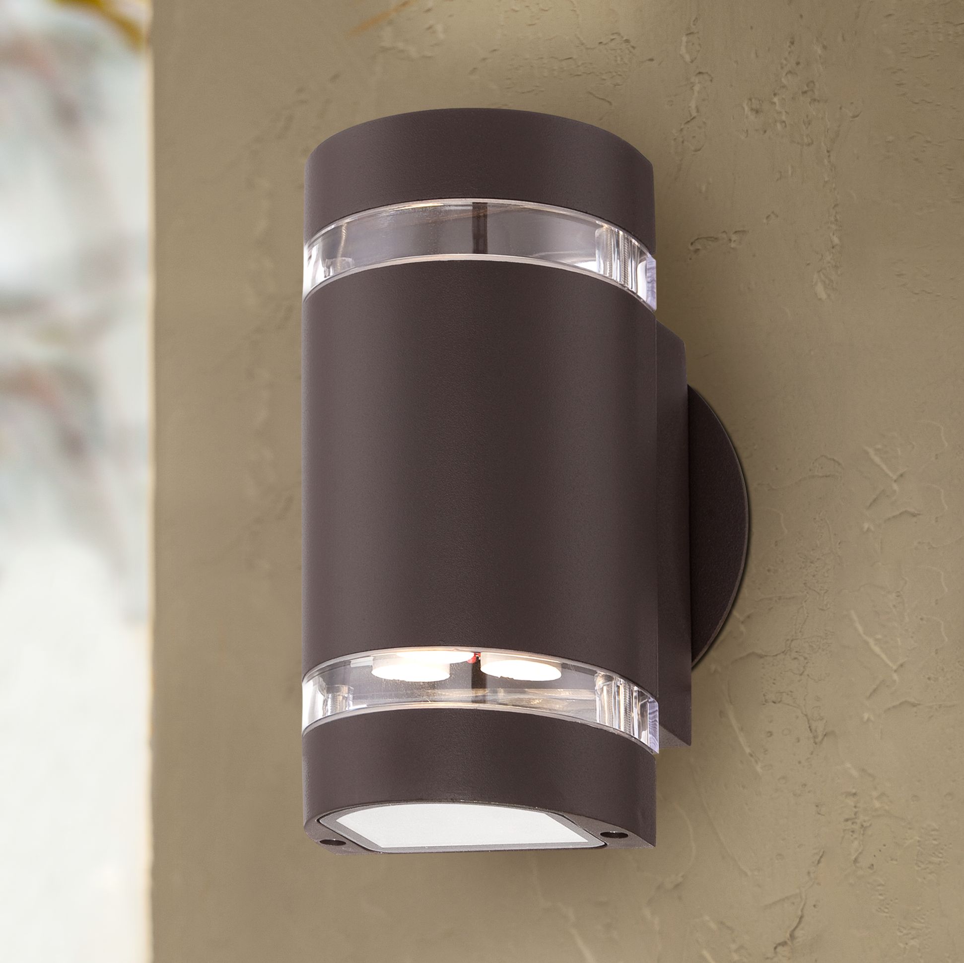 With plenty of illumination, this outdoor wall light makes a great addition to a home's exterior. Finished in bronze and made of aluminum with tempered clear glass, this light shines from both the top and bottom, so you can ensure your home is well lit at night. Plus, the energy efficient LED offers cost effective savings.