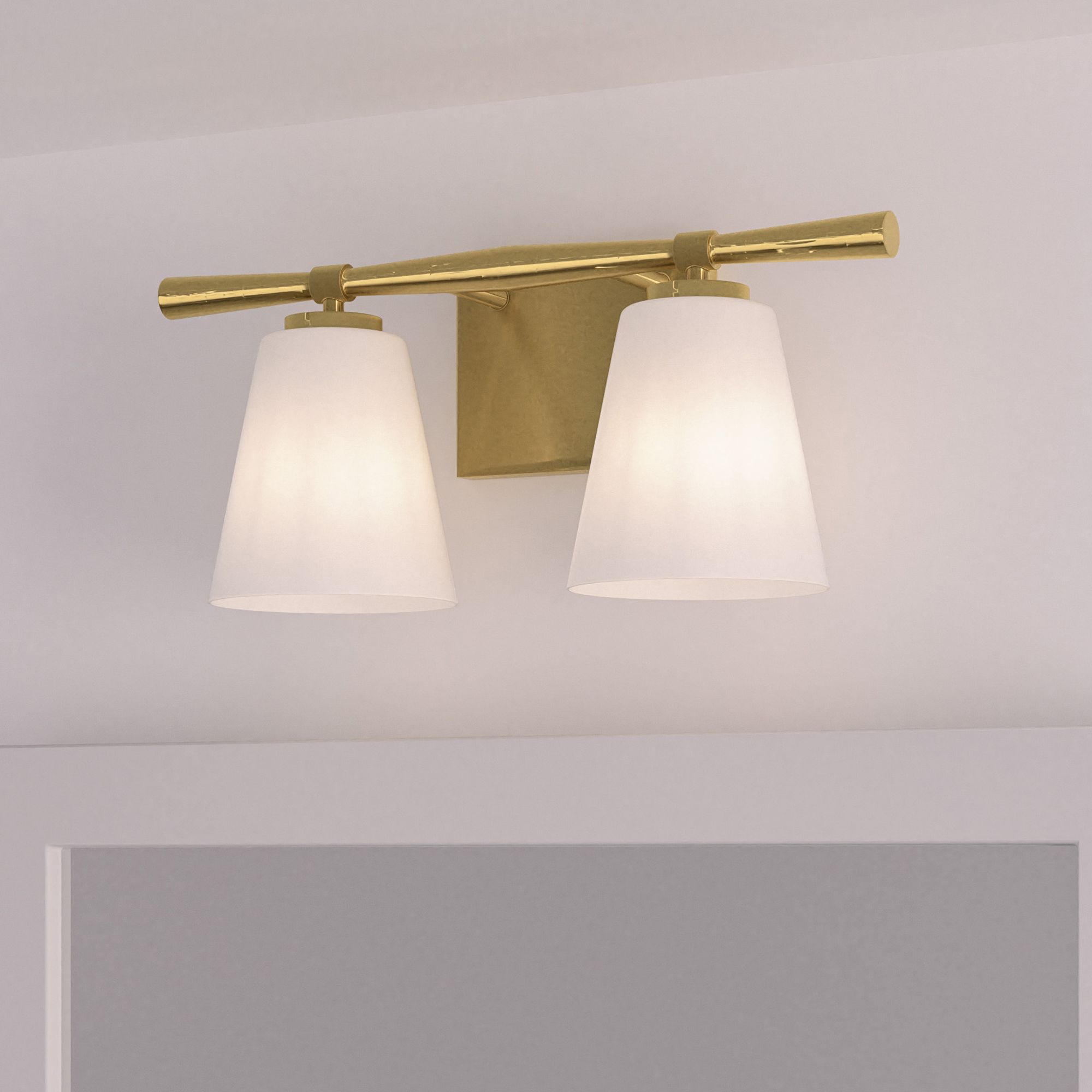 Elevate every inch of your space with a modern two-light wall sconce that blends sleek style and luxurious warmth. An elegant aged brass finish pairs beautifully with opal etched glass shades that soften light into a smooth, alluring glow. Sophisticated, sculptural, and endlessly chic, this fixture turns everyday lighting into a design statement.
