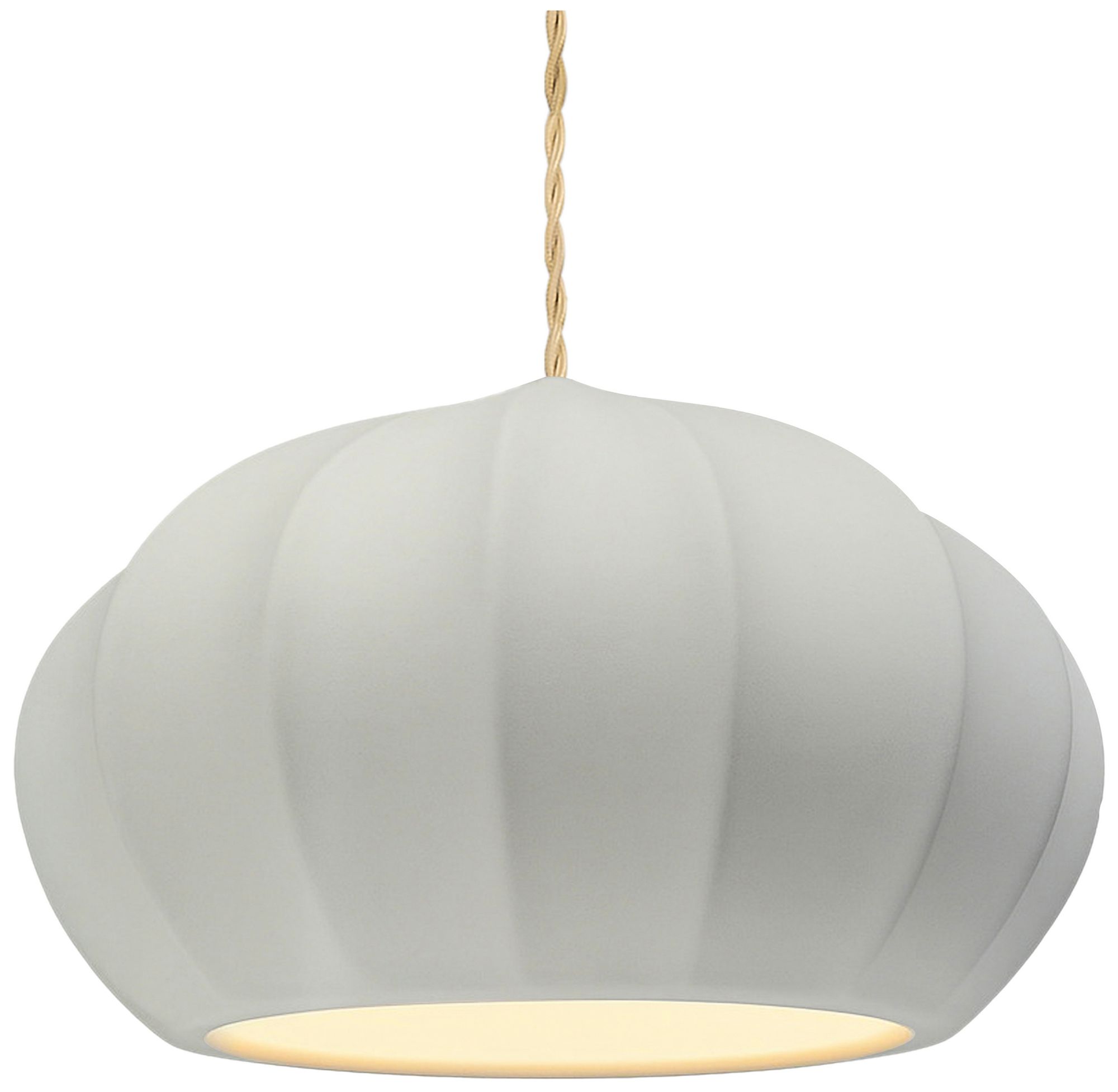 Radiance Fluted 13" Wide Matte White Pendant With Beige Twist Cord